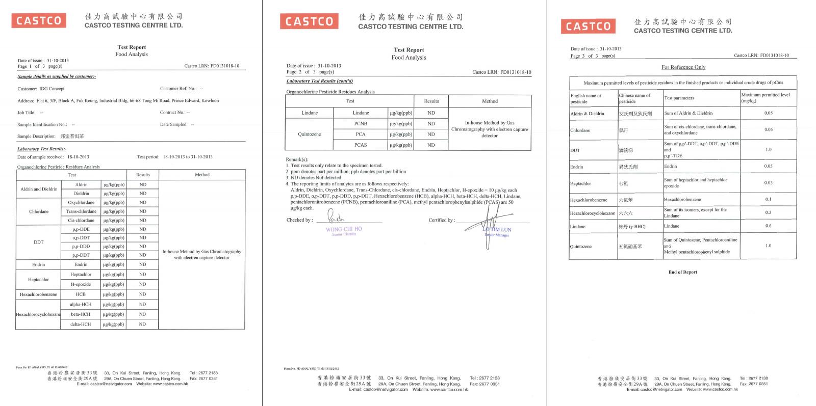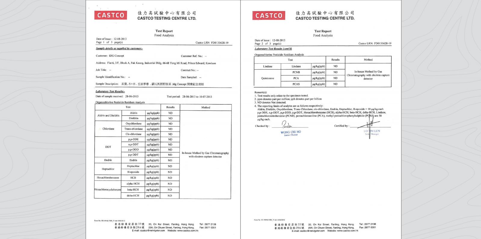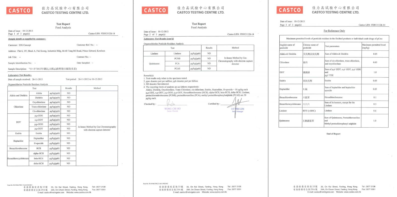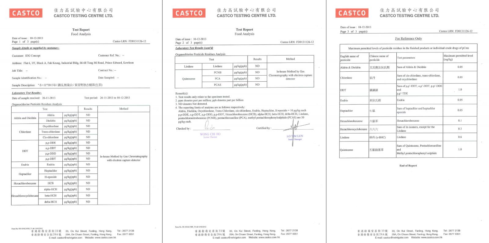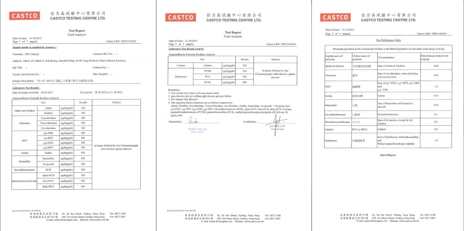 化驗所証實零農藥殘留